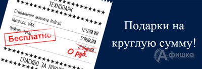 До 28 июня 2015 г. в магазине бытовой техники «ТехноПарк» в Белгороде проходит акция «Подарки на круглую сумму»! При покупке товаров, участвующих в акции, на сумму 7990 руб. и более покупателю предоставляется возможность дополнительно выбрать товар в подарок!