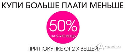 В магазинах одежды «Incity» с 21 по 23 апреля 2015 г. проходит акция «Купи больше, плати меньше» – при покупке от 2-х вещей скидка 50% на вторую вещь!