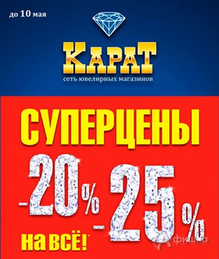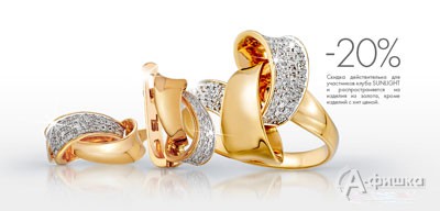 До 29 апреля 2015 г. в ювелирных магазинах «Sunlight» по клубной карте действует скидка 20% на изделия из золота!