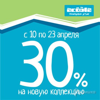 В магазинах модной детской одежды «Acoola Kids» в Белгороде с 10 по 23 апреля 2015 г. на ограниченный ассортимент одежды из новой коллекции скидка 30%!