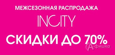 В магазинах одежды «Incity» межсезонная распродажа набирает обороты! С 3 апреля 2015 г. скидки до 70% на выделенный ассортимент коллекций «Осень-Зима 2014/15» и «Весна-Лето 2015»!