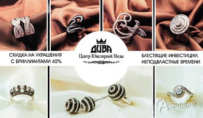 В Центре ювелирной моды «Дива» в Белгороде с 1 апреля по 15 мая 2015 г. на украшения с бриллиантами действует скидка 40%!