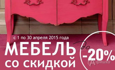 В салоне мебели, декора и подарков «Интерьерная Лавка» с 1 по 30 апреля 2015 г. предоставляются скидки до 20% на мебель!