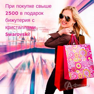 В салоне-магазине аксессуаров «Elisir Shop» в Белгороде специальное предложение – при покупке на сумму свыше 2500 руб. в подарок бижутерия с кристаллами Swarovski! Действуют скидки на все перчатки и платки из осенне-зимней коллекции.