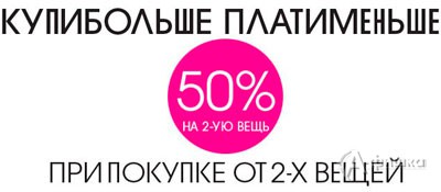 До 19 марта 2015 г. в магазинах одежды «Incity» и магазине белья «Deseo» проходит акция «Купи больше – плати меньше» – при покупке от 2-х вещей предоставляется скидка 50% на вторую вещь с наименьшей ценой!