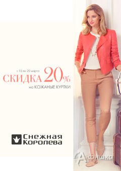 Только до 22 марта 2015 г. в магазине «Снежная Королева» в Белгороде действует скидка 20% на новую коллекцию верхней одежды из натуральной кожи!