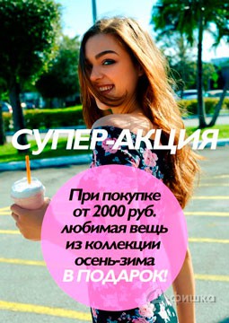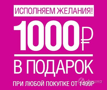 В магазине женской одежды «Concept Сlub» в Белгороде проходит акция «Исполняем желания!» – при совершении покупки от 1499 руб. с 20 марта по 12 апреля 2015 г. получите 1000 руб. в подарок на следующую покупку!