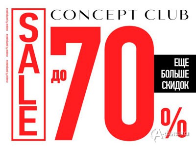 С 30 декабря 2014 г. в магазине женской одежды «Concept Сlub» в Белгороде ещё больше скидок! На новую коллекцию скидки до 70%! Приятные цены на лучшие тренды сезона!