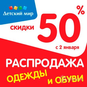 В магазинах «Детский мир» со 2 января 2015 г. проходит распродажа одежды и обуви коллекции «Осень-Зима» – действуют скидки до 50%!