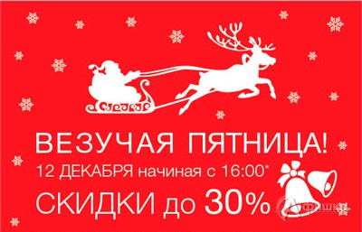 12 декабря 2014 г. в сети книжных магазинов «Читай-город» пройдет акция «Везучая пятница»! Начиная с 16:00 и до закрытия магазинов скидка 30% на все книги!