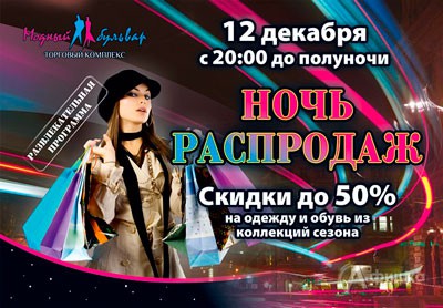 12 декабря 2014 г. в ТРК «Модный бульвар» в Белгороде пройдет «Ночь распродаж». С 20:00 до полуночи скидки до 50% на одежду и обувь из коллекций сезона!