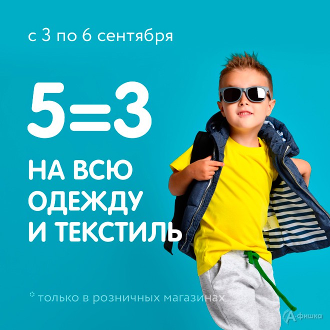 5=3 на всю одежду и текстиль в «Дочки-Сыночки» Щедрые выходные начались! Опубликовано: 04 сентября 2020 г.