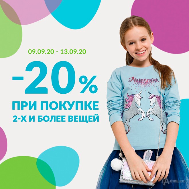 В «Acoola Kids» скидка при покупке от 2-х вещей Акция в магазинах детской одежды Опубликовано: 10 сентября 2020 г.