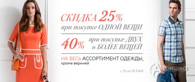 В магазинах джинсовой женской и мужской одежды «Джинсомания» в Белгороде до 31 мая 2014 г. проходит акция «Покупай больше, плати меньше»! На 2-ю покупку скидка 20%, на 3-ю – 30%, на 4-ю покупку – скидка 40%!