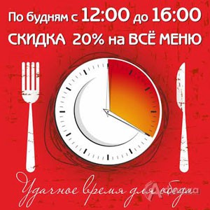 В кафе-баре «Домино» в Белгороде по будням с 12.00 до 16.00 действует скидка 20% на всё меню! Доступная роскошь в самом центре города!
