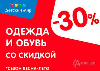В магазине «Детский мир» с 14 по 27 апреля 2014 г. ультрамодная детская одежда и обувь из новой коллекции сезона «Весна-Лето» со скидкой 30%!
