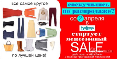 Со 2 апреля 2014 г. в магазинах одежды «befree» стартовала межсезонная распродажа – все самое крутое по лучшей цене!