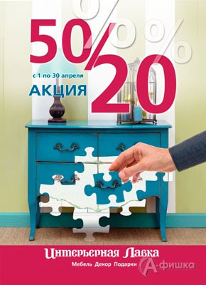 В салоне мебели, декора и подарков «Интерьерная Лавка» с 1 по 30 апреля 2014 г. проходит акция «50/20. Покупайте мебель – получайте скидки»: при покупке мебели от 100 000 руб. за каждые 10 000 руб. вы получаете 5 000 руб. для покупок в апреле и мае в пределах 20% от их стоимости!