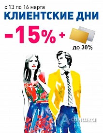 В универмаге «lady & gentleman CITY» с 13 по 16 марта 2014 г. проходят клиентские дни – скидка 15% на новую весенне-летнюю коллекцию! Постоянным клиентам скидки до 30%!