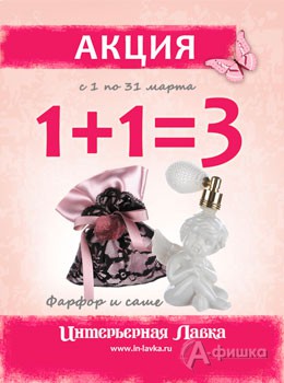 В салоне мебели, декора и подарков «Интерьерная Лавка» с 1 по 31 марта 2014 г. проходит акция «Фарфор и саше. 1+1=3»: при покупке двух любых товаров от брендов Kroemer и Maryse a Paris – третий в подарок!