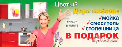 С 1 по 31 марта 2014 г. в фирменных магазинах мебели «Столплит» в Белгороде проходит акция «Цветы? Дари мебель»! При покупке кухонь мойка, смеситель и столешница в подарок!