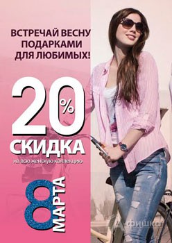 С 6 марта 2014 г. в салоне женской обувной сети «Эконика» в Белгороде действует актуальное предложение к праздникам – скидка 20% на модели из демисезонного ассортимента новой коллекции Весна-Лето!