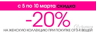 С 5 по 10 марта 2014 г. в магазинах женской одежды «Incity» проходит акция к 8 Марта – скидка 20% на новую женскую коллекцию при покупке от 3-х вещей!