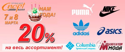 Только 6, 7 и 8 марта 2014 г. в магазинах «Спортивный мир» и «Спортландия» в Белгороде специальная праздничная скидка 15% на весь ассортимент!