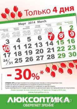 К 8 Марта в ювелирных гипермаркетах «Sunlight» на золотые изделия скидка 30%! Предложение действительно до 10 марта 2014 г.
