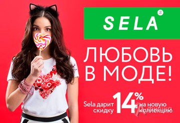 С 7 по 16 февраля 2014 г. в магазинах одежды «Sela» проходит акция — при любой покупке Вы получаете купон на скидку 14% на яркую весеннюю коллекцию!