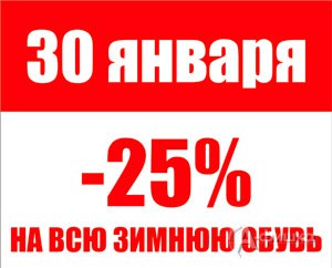 Только 30 января 2014 г. в обувном магазине «Лёгкий шаг» в Белгороде акция – на всю зимнюю обувь скидка 25%!