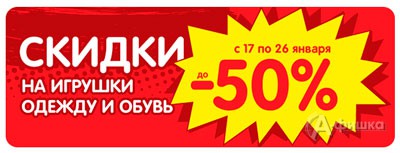 С 17 по 26 января 2014 г. в «Детском мире» грандиозная распродажа – скидки до 50% на игрушки, детскую одежду и обувь из осенне-зимней коллекции!