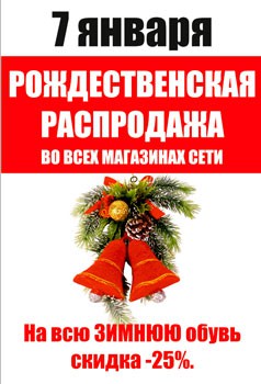 7 января 2014 г. в сети обувных магазинов «Лёгкий шаг» в Белгороде пройдет Рождественская распродажа женской и мужской обуви – скидка 25% на всю зимнюю обувь!
