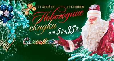 До 12 января 2014 г. в ювелирных салонах «Самоцветы+» в Белгороде на ювелирные украшения действуют новогодние скидки от 5 до 35%!