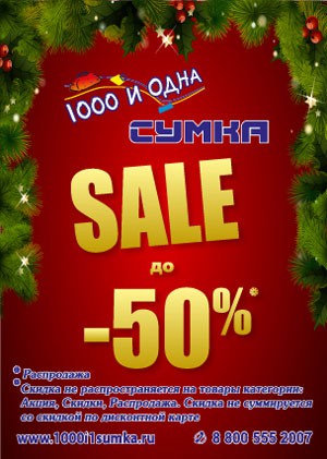 Со 2 января 2014 г. в магазинах сети «1000 и одна сумка» стартует Sale! Скидки на весь ассортимент до 50%!