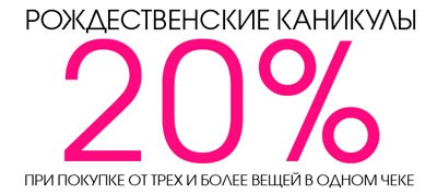 С 3 по 8 января 2014 г. в магазинах женской одежды «Incity» проходит акция «Рождественские каникулы» – скидка 20% при покупке от трех и более вещей в одном чеке.