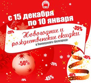 С 15 декабря 2013 г. по 10 января 2014 г. в универмаге «Белгород» новогодние и рождественские скидки до 70%!