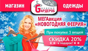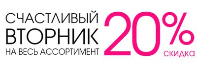 26 ноября 2013 г. в магазинах одежды «InCity» акция «Счастливый вторник» – на весь ассортимент товаров скидка 20%!