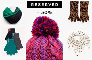 С 8 ноября 2013 г. в магазинах одежды «Reserved» начинается акция на мужские, женские и детские шапки, шарфы и перчатки – получайте скидку 50% на вторую вещь!