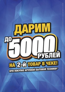 С 8 по 24 ноября 2013 г. в магазинах бытовой техники «Союз» проходит акция – дарим до 5000 рублей на второй товар в чеке при покупке крупной бытовой техники!