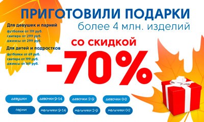 «Детский мир» открывает осеннюю распродажу! С 15 октября 2013 г. — скидки до 30% на одежду и обувь модной детской коллекции осень-зима 2013.