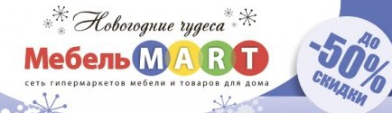 Только с 1 декабря по 31 января в Гипермаркете «МебельMART» проводится праздничная акция: «Новогодние чудеса от «МебельMART»! В этой фантастической акции скидки на товары достигают 50%!