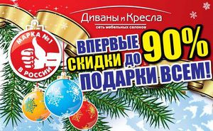 В период с 2 по 8 декабря в сети салонов «Диваны и Кресла» скидки до 90% и подарки всем покупателям! Успейте купить себе новую мебель по выгодной цене!